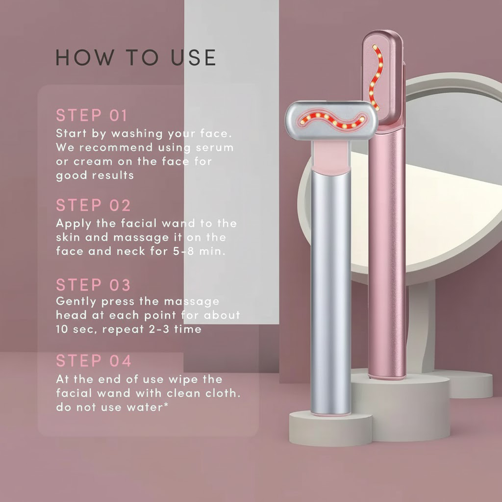 2. Under-Eyes: Use the lowest intensity. Gently glide from the inner corner outwards towards your temples. Avoid direct contact with eyelids.